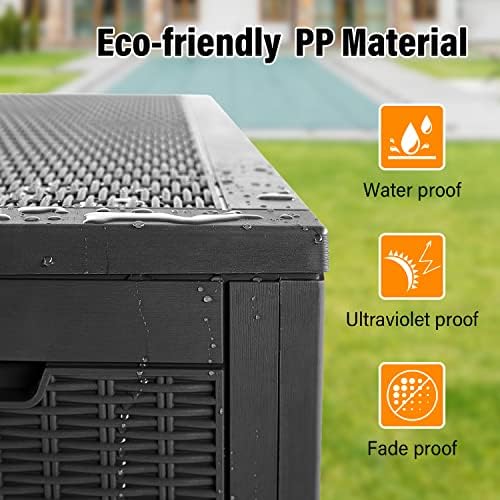 PayLessHere 100 Gallons Deck Box Multifunctional Storage Box Waterproof Outdoor Storage Pool Storage Box Bench with keyhole for Indoor/Outdoor Garden Pool Patio Storage