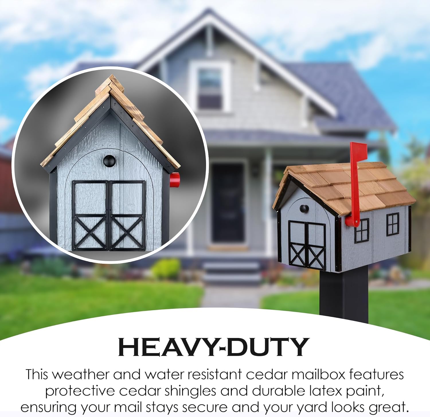 UNIQUE MAILBOXES FOR OUTSIDE POST MOUNT: Our Amish mailbox features a painted exterior, windows, doors, and a natural cedar roof. Each element is handcrafted in detail for mailboxes and accessories that can easily add to your curb decor. Dimensions: 12″ W x 20.5″ D x 13.5″ H. Post and mounting bracket are not included.