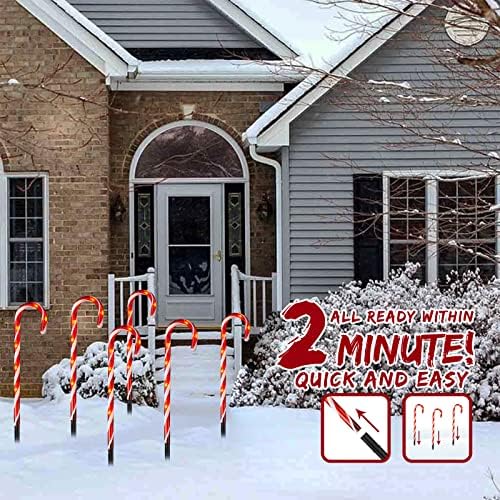 【Easy to Install】: Patiently untie the long lead wire together, connect the ground stake and the candy cane light and insert it into the loose soil. Your front yard will immediately enter the Christmas Wonderland