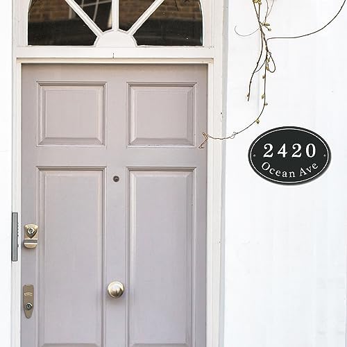 Personalized Reflective Address Plaque, Custom Aluminum House Number Sign with Two Screw, Address Sign for Outside Home, Street, House, 10″ x 7.5″ (Ellipse)-(Black or Green)
