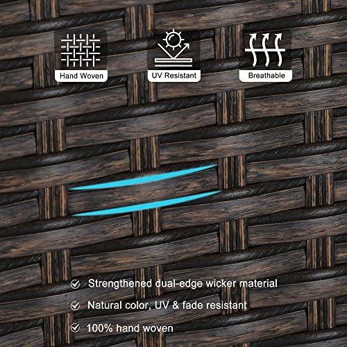 【Strong Wicker Chairs】 Made of tightly woven weather-resistant brown rattan, UV & fade resistant, long service life for all seasons. Natural textured wicker with strong wrapped edges, won’t tear easily, much more durable and stronger than other normal rattan materials.