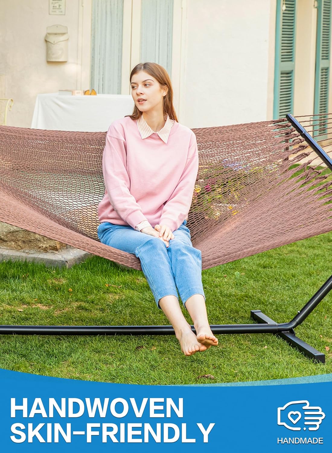 Be the first to review “PNAEUT Double Hammock with Stand, Luxurious Handwoven Rope Hammocks, 2 Person Heavy Duty Steel Stand for Outside, Max 475 lbs Capacity (Mocha, with Stand)”