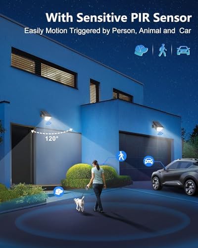 Build-in Sensitive PIR Sensor: Under the motion sensor mode, solar motion lights will be activated in 1s once detects motion, and automatically change brightness after 15s. New sensor helps solar spot lights detect Human/Pet/Car movement sharper and quicker then solar landscape lights.