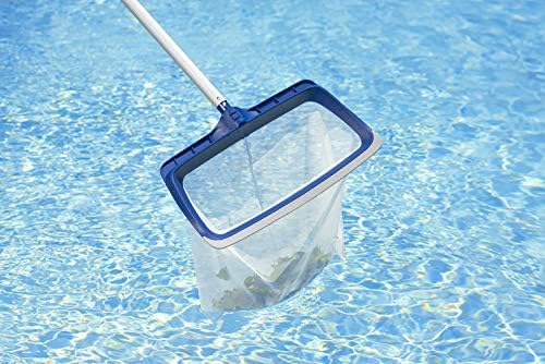 The skimmer with scoop-front edge helps to effortlessly skim leaves and debris off of pool surface while the pool rake’s 13-inch deep pocket allows for underwater cleaning of leaves and debris in pool