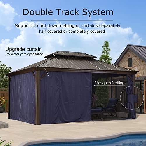 PURPLE LEAF 12′ X 16′ Permanent Hardtop Gazebo for Patio with Netting and Curtains Deck Backyard Heavy Duty Sunshade Metal Roof All Weather Outdoor Pavilion Canopy