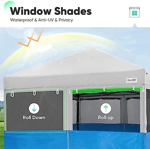 Quictent 2 in 1 Pop up Canopy Tent 10’x10’ with Sidewalls, One Person Ez up Screened Gazebo Canopy, 4 Large Mesh Windows with Window Cover for Camping, Backyard and Outdoor (Gray&Blue)