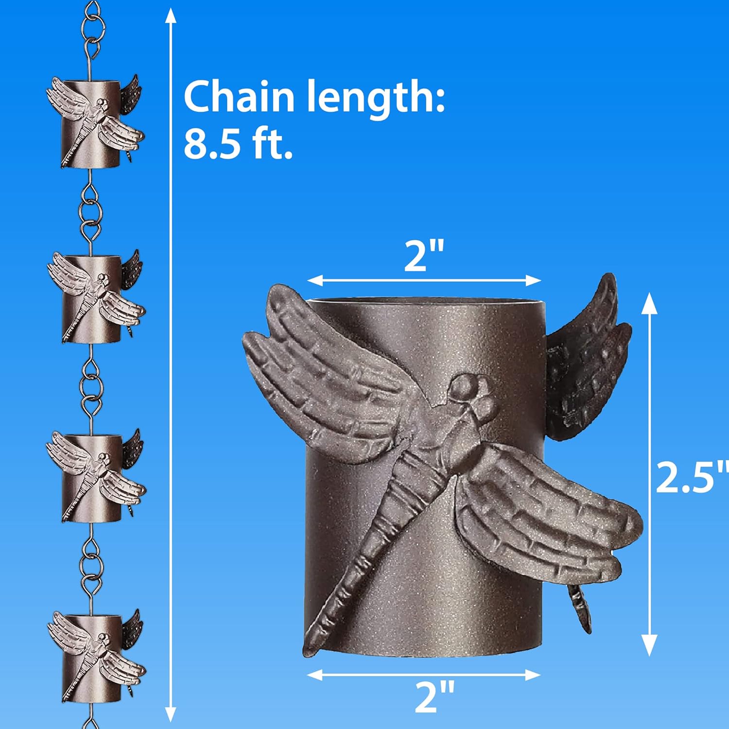 Rain Chain 8.5 Feet Length – Functional & Decorative Replacement Downspout for Gutters – Rain Chain Gutter Catcher – Garden Rainwater Diverter for Home, Garden, Backyard