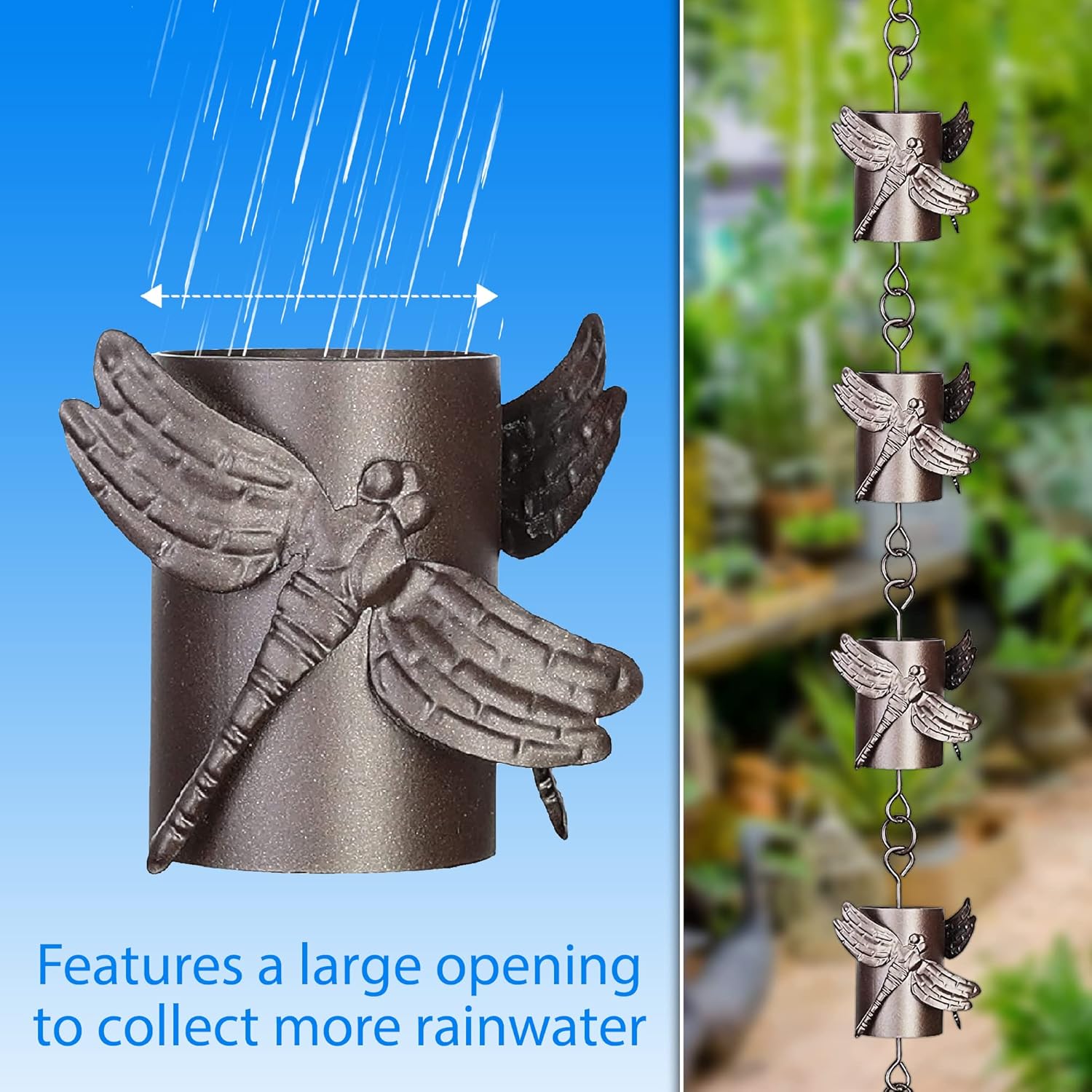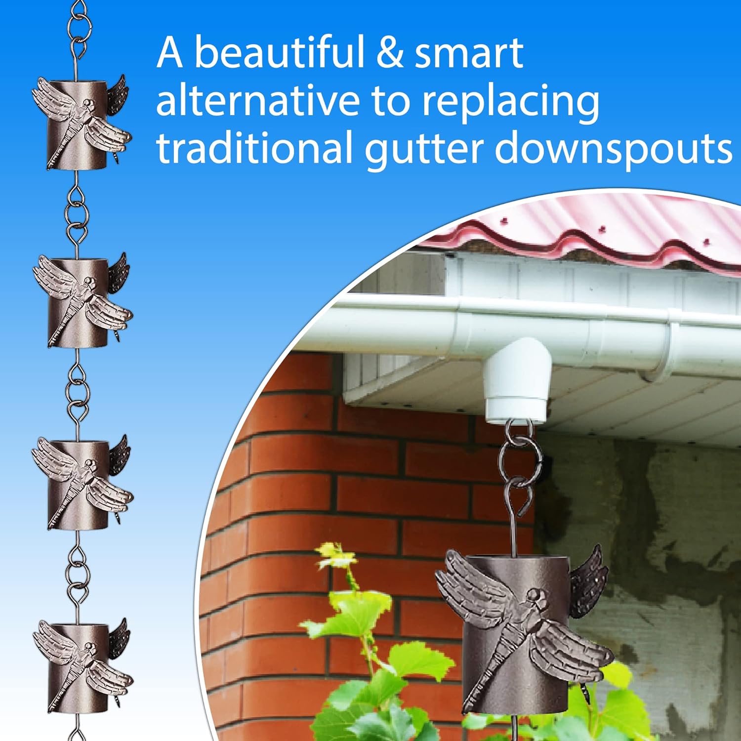 Decorative design: Our rain chains for gutters create a stunning fountain effect that can instantly brighten up your home or garden. Their unique cup size and 8.5-foot chain make them a great addition to any outdoor space.