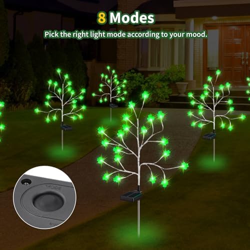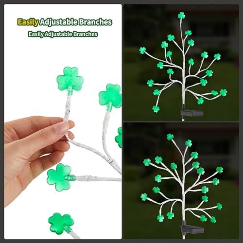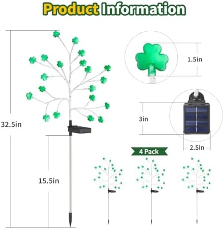 ☘️[What Do You Get? ] 4 high-quality st patricks day lights, totaling 80 LED glowing shamrocks. Each shamrock emits a lucky green light, and outdoor solar lights are a total of 8 lighting modes to choose from, allowing you to select the mode that suits your st patricks day decorations.