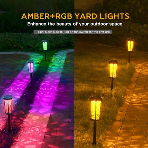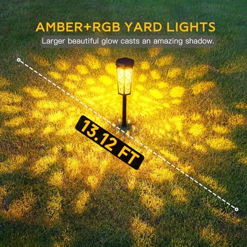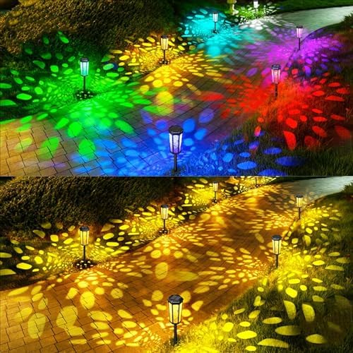 【COLORFUL YARD LIGHTS】Compared with the traditional warm white solar lights, upgraded high-quality LED beads qualified with 2 lighting modes, auto changing RGB COLOR and WARM WHITE. You can choose the mode according to different scene needs. The warm white color creates a soft and welcoming ambiance. RGB fade is perfect for Christmas, Halloween, parties, camping, weddings, and landscape illumination in your garden, patio, pathway, grass, and sidewalk.