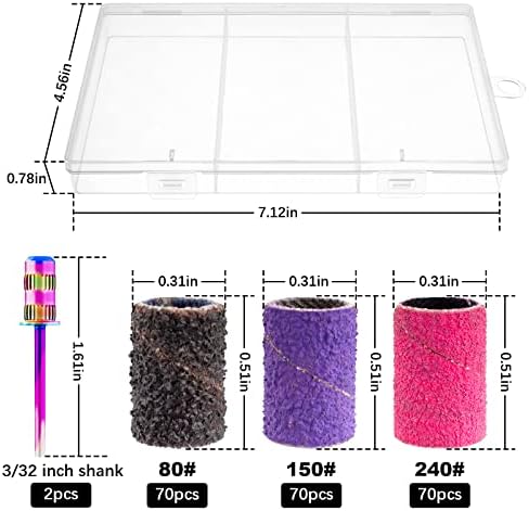 Sanding bands set boxed:You will receive 210 pieces Sanding bands for nail drill,including 70 black coarse grit #80,70 purple medium grit #150,70 pink extreme fine girt #240 and 2 pieces 3/32 inch cute iridescent nail bit replacement nail drill bits sanding band mandrel,for professional studio use or home use,perfect for manicures and pedicures