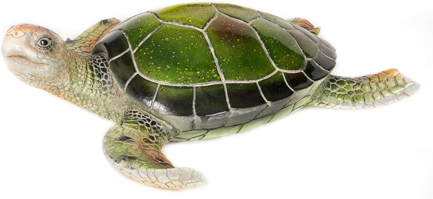 Introducing the stunning Sea Turtle Statue from Corner Merchant, the perfect addition to your outdoor space. This formal garden statue is meticulously crafted to capture the beauty and grace of a green sea turtles, making it a must-have for any turtle lover. Sea Turtle Garden Decor made of polystone with exquisite detailing for indoor and outdoor ocean inspired decorating. Nautical Statue Sea Turtle measures 15 in long and made of polystone resin to give great realistic detailing. Sea Turtle Wall sculpture in vivid colors has slots to hang on your garden fence, porch wall, entryway and lanai. Large Sea Turtle patio figurine or wall hanging has a smooth shiny green colored shell and textured skin.
