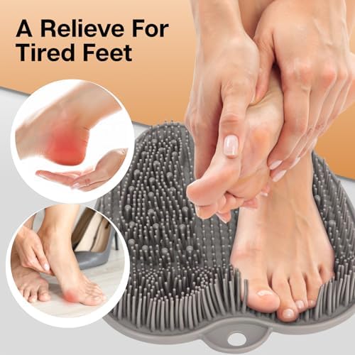 Silicone Foot Scrubber Mat and Body Scrubber Set – Shower Exfoliation and Cleansing Bundle – Shower Foot & Body Cleaner, Bath Massage Cushion Brush