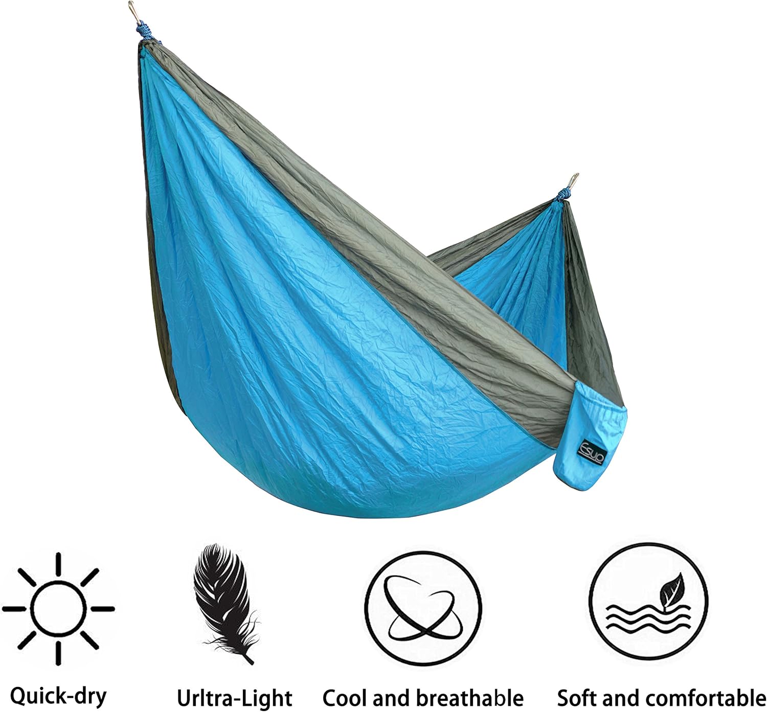 Single & Double Camping Hammock -Lightweight Nylon Portable Hammock, Best Parachute Hammock with Tree Straps for Backpacking, Camping, Travel