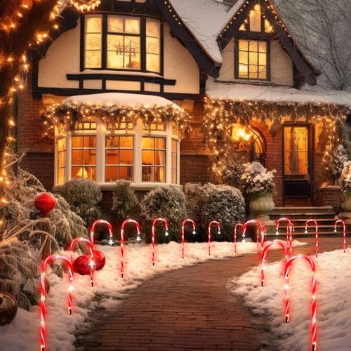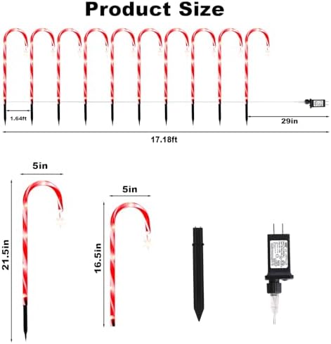 【25FT & 10Pack】Our Christmas outdoor decorative lights come in a set of 10 and can cover up to 25 feet in length. Each candy light is 22 inches tall and spaced 19 inches apart, giving you a stable and dense decorative effect.