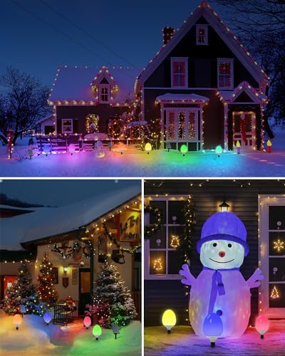 Solar Christmas Lights, Color Changing Solar Lights Outdoor Waterproof, Solar Christmas Path Lights for Tree Pathway Outside Garden Walkway Lawn Patio Yard Decoration 2 Lights in 1