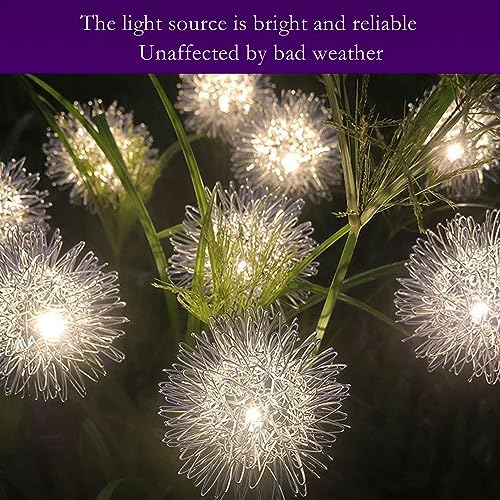 💡 💡 💡【Solar Garden Light—2pcs 10cm Swaying Dandelion Lights】Giant metal dandelion 10 cm in diameter. The dandelion-shaped exterior, made of aluminum material, is as soft as a dandelion when illuminated by a lamp. The high-grade durable material flexible lamp is wrapped with a layer of flexible rubber tube, which can make the lamp sway in the wind like a soft branch. Add a lot of spice to your garden and house.
