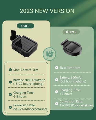 DUSK TO DAWN LIGHT UP ALL NIGHT – Carego solar outdoor lights use monocrystalline, compared with other polycrystalline models on the market, it has the higher conversion rate to assure solar garden lights faster charging even on a cloudy day. Premium solar panel and 600mAh rechargeable battery means our solar lights can effectively absorb more sunlight and converts it into electricity. Charging for 6-8 hours can continuously glow for 8-12 hours.