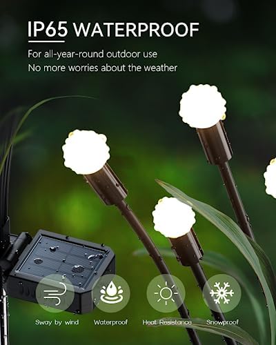 BRING YOUR GARDEN TO LIFE: Carego solar swaying lights with more flexible and softer wire, swing more easily in the breeze without clumping together. Each garden light features 8 bright LEDs, when night falls, the breeze blows, these solar garden lights sway with the wind, as if real fireflies dancing in the garden, adding a vivid view and creating an exciting and beautiful romantic atmosphere to your garden. Pick now and Be ready to get compliments from neighbors!