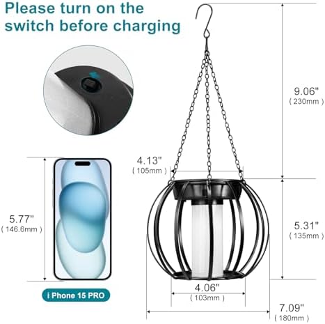 💡【Long-lasting Lighting】After being fully charged during the day, these outdoor hanging lights provide 6-8 hours of mesmerizing illumination at night. Experience a consistent and radiant glow throughout the evening. Elevate your outdoor hanging lamp display with this 4-pack of outside solar lights, allowing you to achieve a symmetrical and harmonious ambiance that enhances the beauty of your space. For optimal performance, remember to turn on the switch before charging the lanterns.