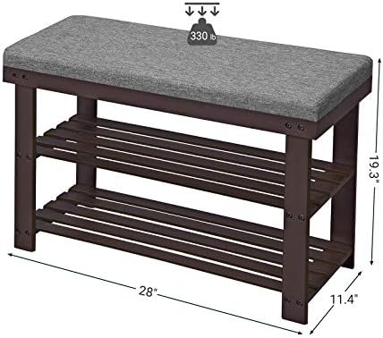 SONGMICS Bamboo Shoe Bench, 3-Tier Shoe Rack, Stable Shoe Organizer for Entryway, Living Room, Bench Seat Holds Up to 330 lb, 11.4 x 28 x 19.3 Inches, Brown and Gray ULBS604CG