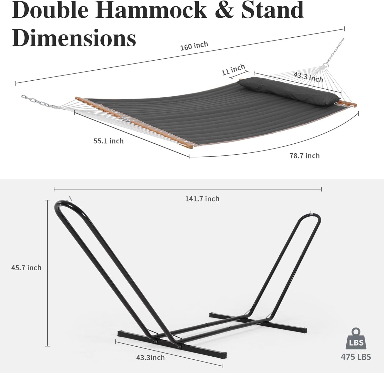 SUNCREAT Freestanding Outdoor Hammock for 2 Person, 475 lbs Capacity, Stand Alone Hammock for Outdoor, Patio, Backyard, Garden, Patent Pending, Dark Gray