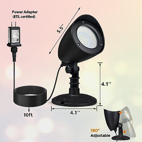 【Indoor & Outdoor Use】 The LED up light can be used as accent lighting for Christmas trees or indoor plants, creating a holiday atmosphere for the living room and bedroom. Crafted to withstand the elements, these spotlights are constructed with durable, IP44 waterproof plastic materials in a classical black finish. The Christmas spotlights endure any rain and snowy weather.