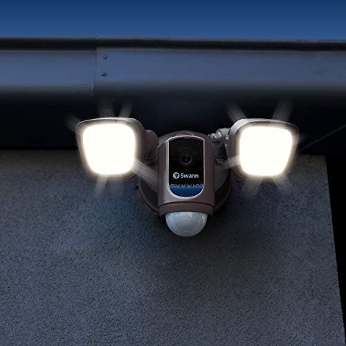 Swann Wi-Fi 1080p Waterproof Motion Activated FloodLight Camera with Night Vision, Heat Sensing, 2-Way Talk, Dimmable 2400 Lumens, Wide 125 Degree Viewing, Free Cloud & Local Recording