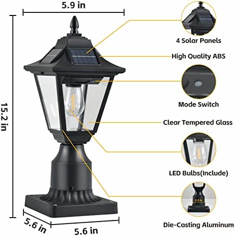 【Two Mounting Options】Quick and painless installation, no wiring required. Our outdoor solar lamp post lights come with a pier mount base, it can either be installed on a 3″ diameter pole or fixed to a pier. The solar powered post lanterns are perfect for outdoor use, such as garden, courtyard, pathway, patio, backyard, walkway, etc.
