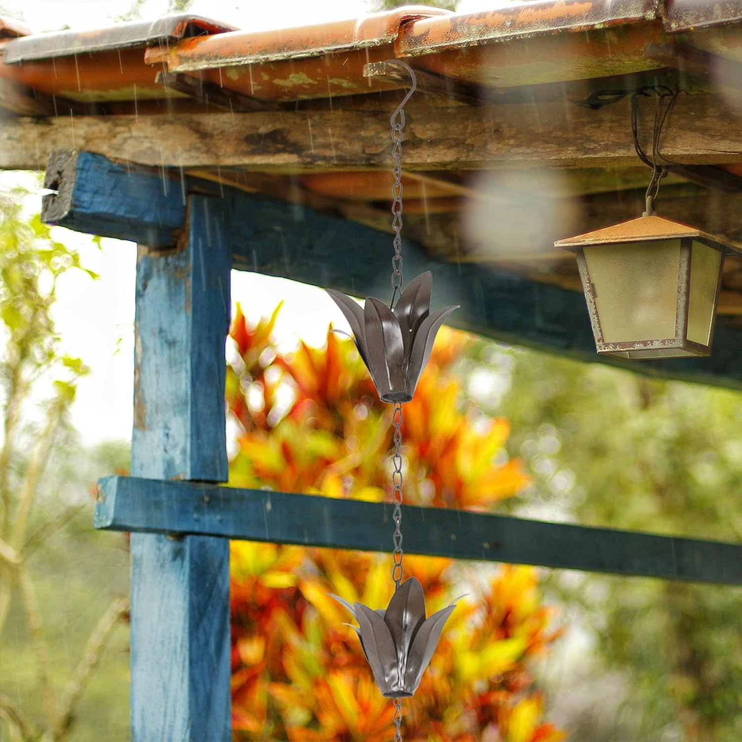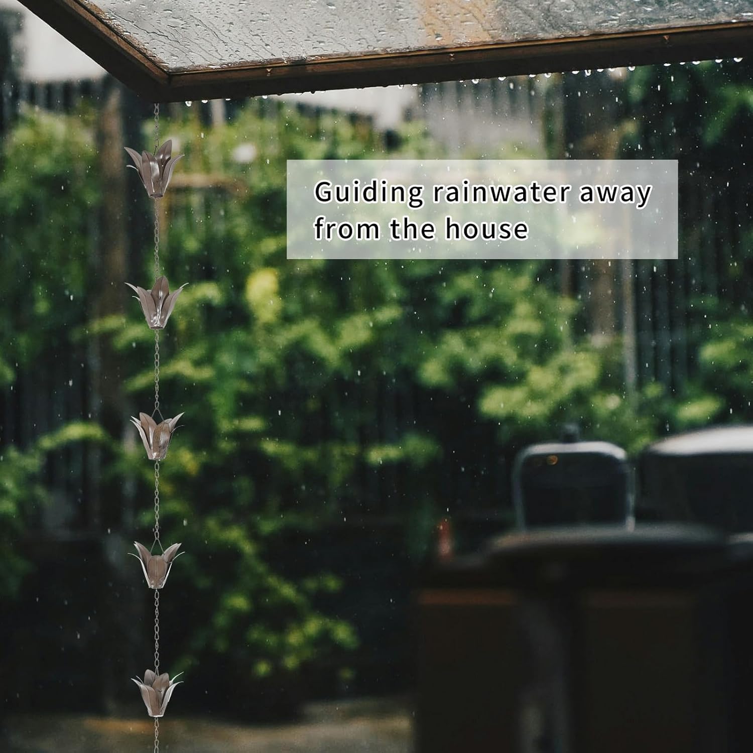 The rain chain is designed with flower shape.Decorate your outdoor garden or porch have that modern, gorgeous look