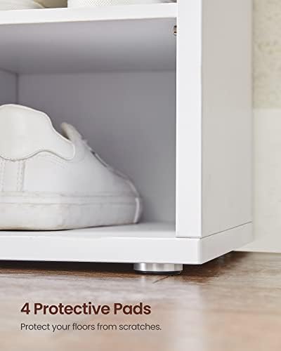 VASAGLE Shoe Bench with Cushion, Storage Bench with Padded Seat, Entryway Bench with 15 Compartments, Adjustable Shelves, for Bedroom, 11.8 x 41.3 x 18.9 Inches, White and Gray ULHS15WT