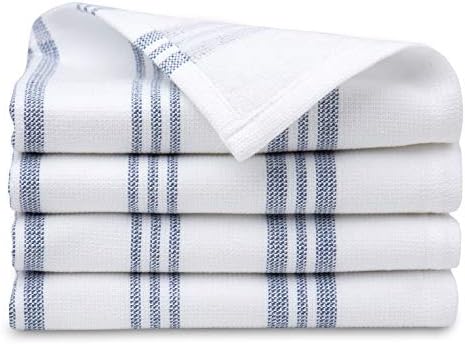 Washcloths Set 100% Cotton, White Soft and Absorbent Terry Towels, Modern Stripe, Reusable Fingertip Towels, Quick Drying, 13 in x 13 in, 4 Pack, Navy Blue