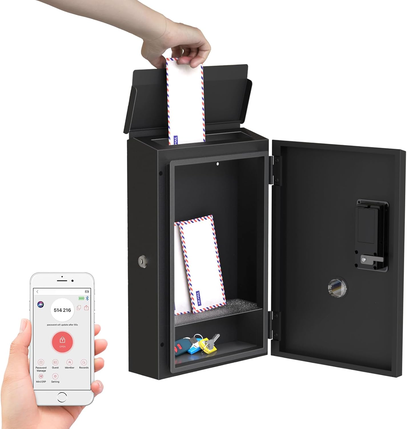 WeHere Mailbox & Key Box 2 in 1 Multi-Purpose Box, Wall Mount Locking Postbox,Key Drop Box with Electronic Lock, One Time Code/APP Bluetooth/Wi-Fi/Fixed Code/Key Unlock, Large Capicity Storage Letter