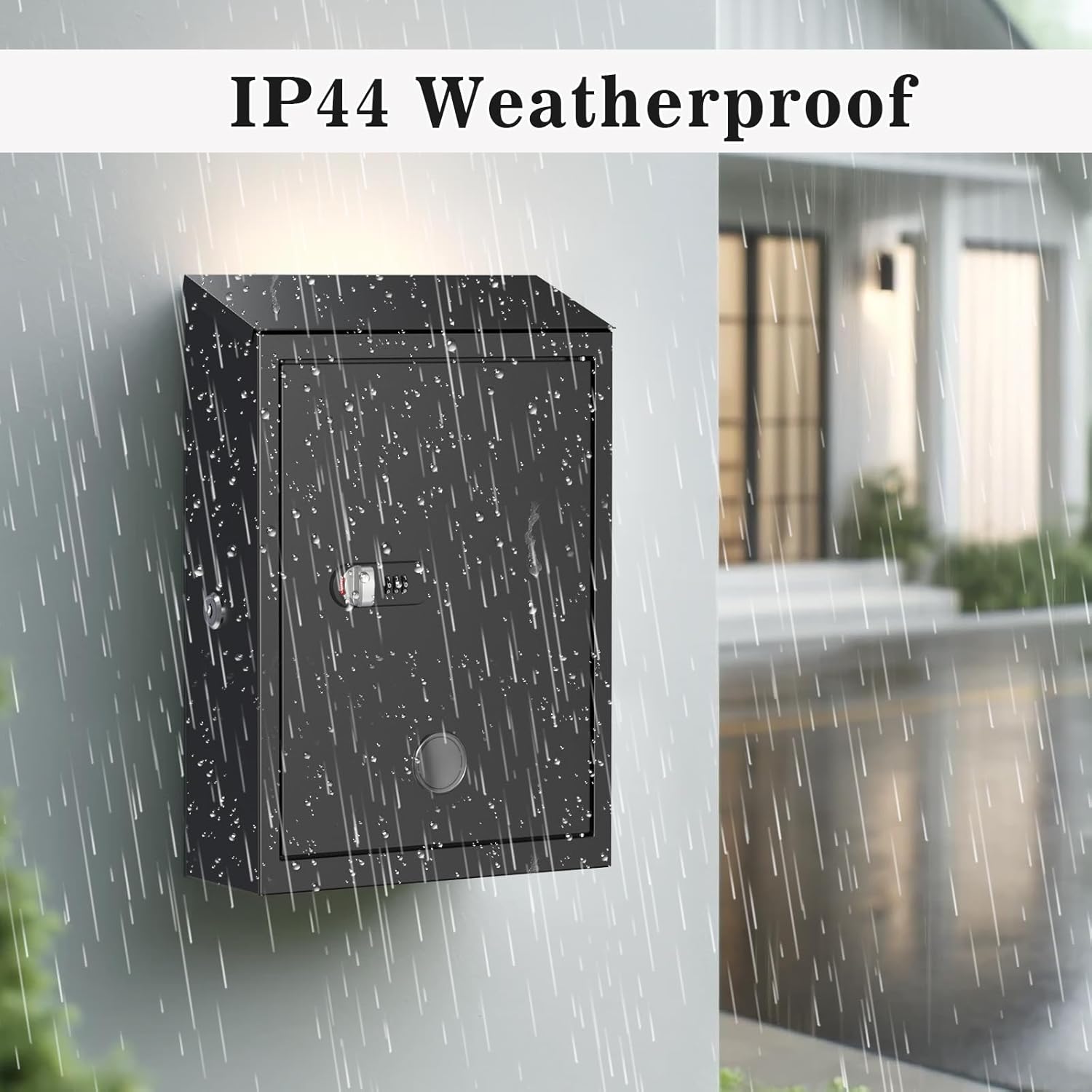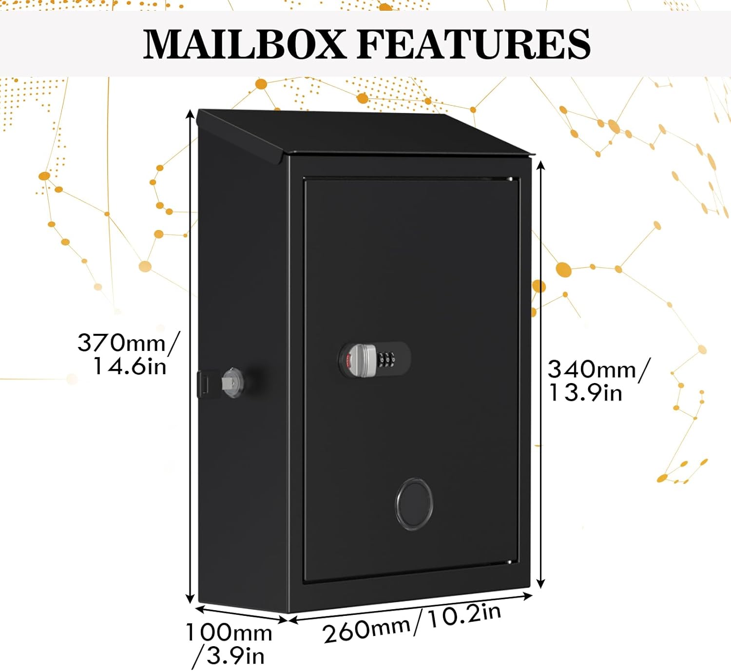 WeHere Mailbox Wall Mount, Locking Post Box for House, Key Drop Box, Combination & Key Unlock, Letters, Magazines, Weatherproof, Large Capacity 14x4x10in,Black