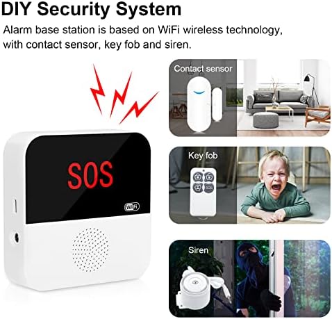 WiFi Door Alarm System, Wireless DIY Smart Home Security System, with Phone APP Alert, 8 Pieces-Kit (1 Alarm Base Station 5 Door Window Sensors 2 Key Fobs) for House, Apartment 2.4GHz Wi-Fi Only