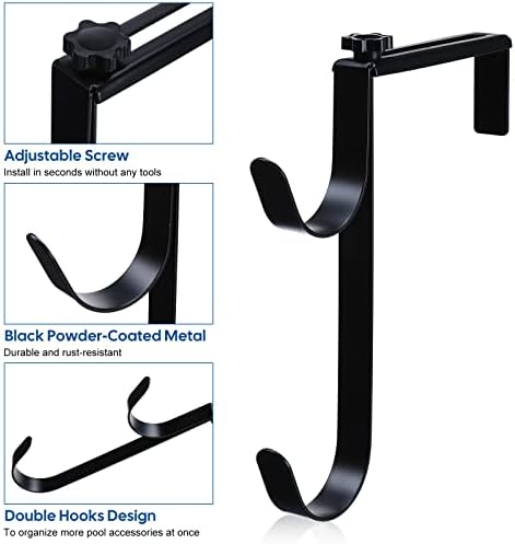 WIOR 4PCS Adjustable Pool Pole Hangers, Metal Fence Hooks Pool Tool Holder for Telescopic Poles Skimmers Vacuum Hose Nets Brushes Swimming Pool Accessories Garden Equipment Outdoor Supplies Organizer
