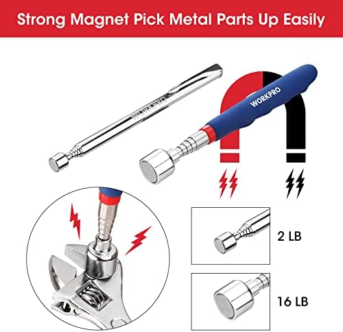 WORKPRO 4PC Telescoping Magnetic Pick Up Tool Kit, Includes Telescoping Inspection Mirror, 2PC Magnetic Pick Up Tool And Four Claw Grabber Tool, Pick Up Grab Tool Set For Auto Repair