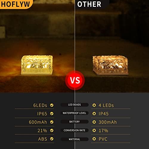 Powerful lighting effect: We have upgraded the solar panel and battery capacity to 600mAH to ensure that the Solar Brick Lights absorb ample sunlight during the day and provide bright and long-lasting illumination at night.