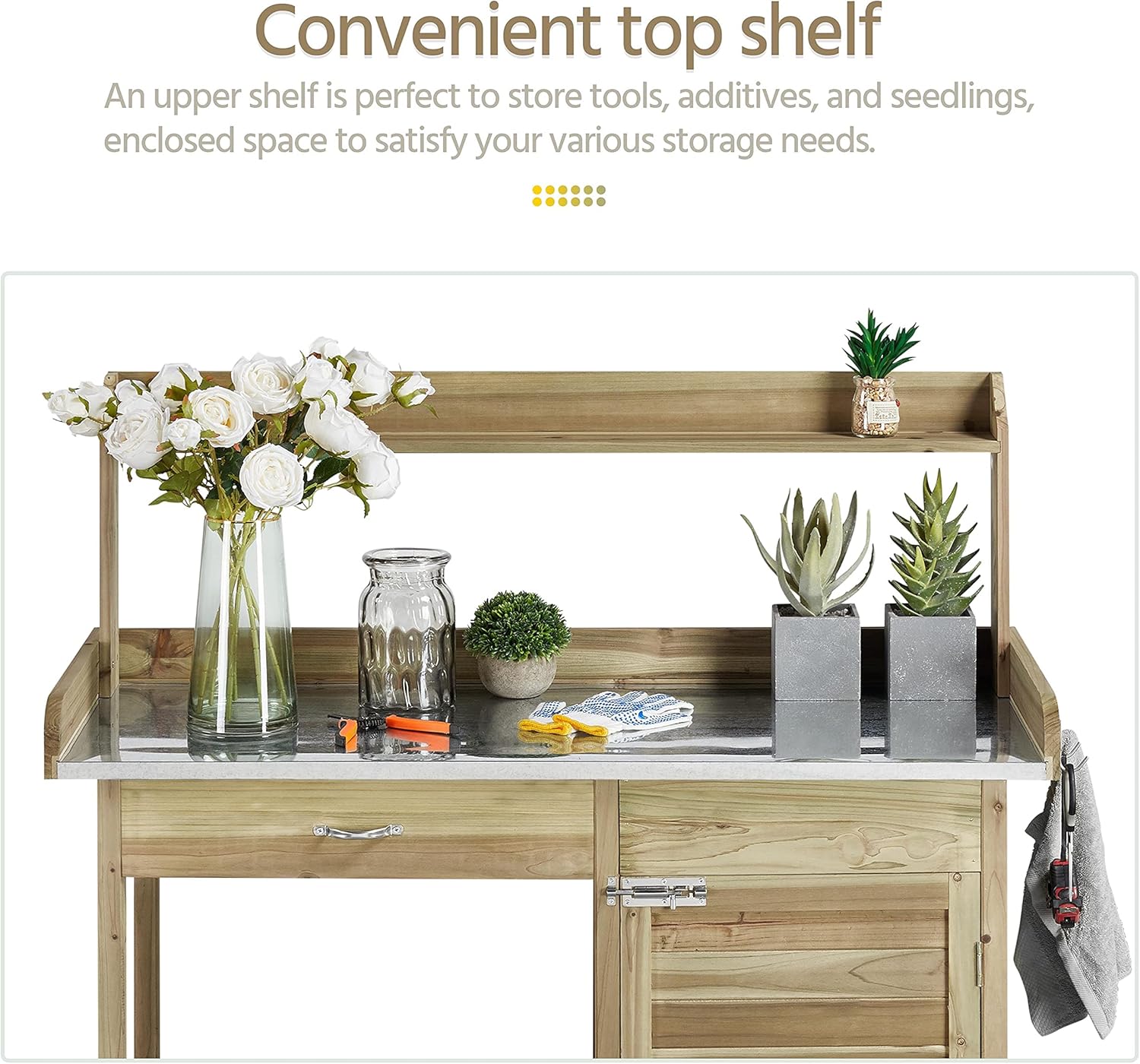 Yaheetech Outdoor Potting Bench Table, Garden Work Bench w/Metal Tabletop Work Station w/Cabinet Drawer, Open Top&Lower Shelf, Handy Hooks, ACQ Lumber Wood, Light Green