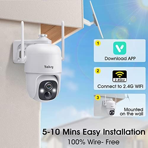 Yakry Security Cameras Wireless Outdoor WiFi 5W Solar Battery Powered 2K 3MP Solar Security Camera with 365 Days Continuous Power Supply C3