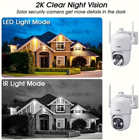►【2K Resolution & Infrared/White Light Night Vision】WiFi 2K Picture security camera is equipped with 1/3 CMOS color sensor ensures clear images and video. Outdoor security camera’s night vision function can choose infrared light or white light according to your preference.