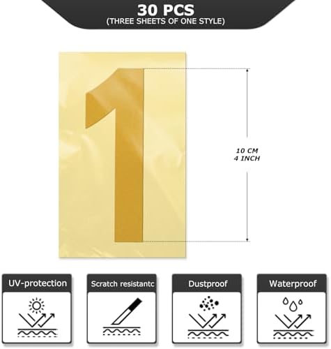 YIKIADA Gold Reflective Mailbox Number 3 Set Vinyl Sticker Self-Adhesive Decal Waterproof Door Signs House Address Numbers 0-9 for Outside Home Office 30 PCS