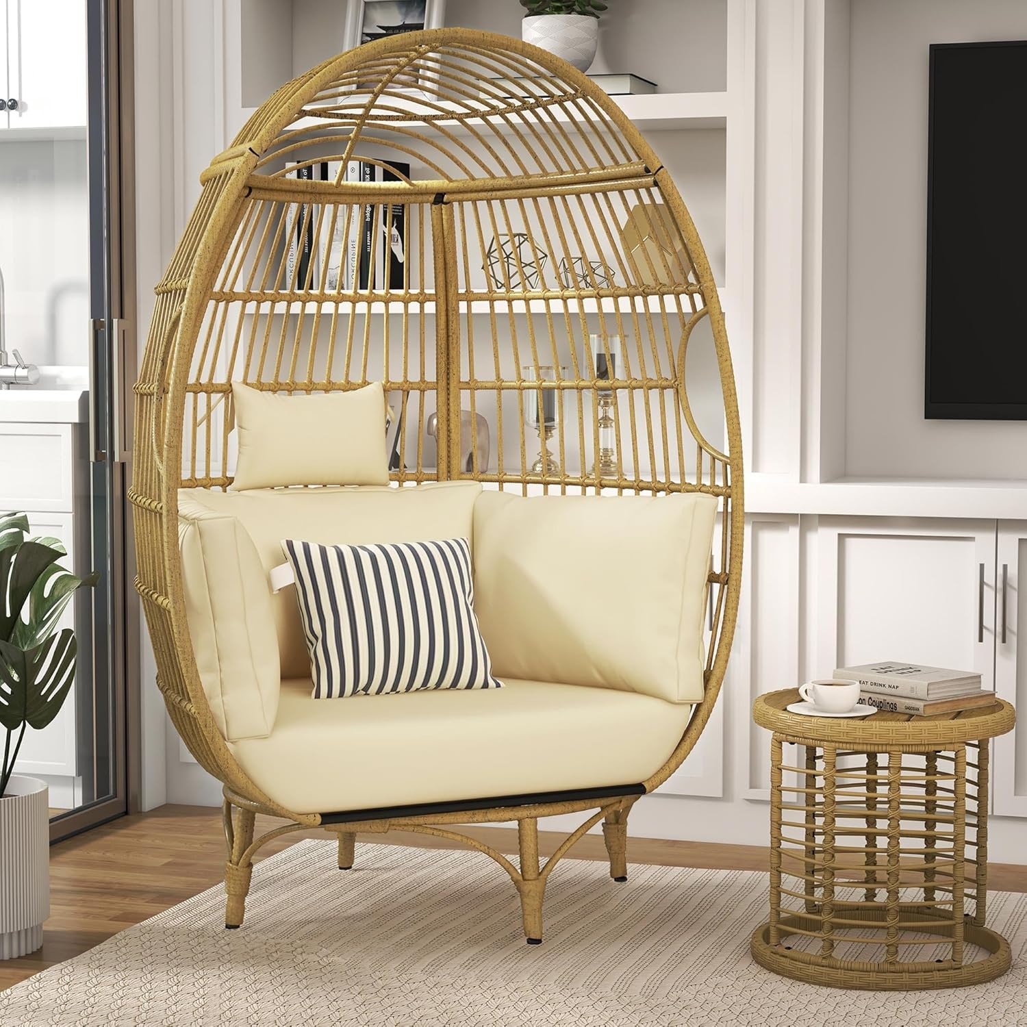 Steps to Ultimate Relaxation: Luxuriate in unrivaled comfort with the deluxe 4-inch padded cushions, lumbar support, and headrest pillows of this oversized basket chair. Whether you crave a cozy reading nook or a spot to unwind, this egg chair offers an elite sanctuary to stretch out and decompress at your leisure.