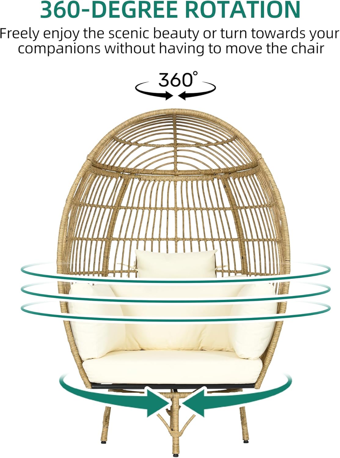 YITAHOME 360° Swivel Egg Chair Outdoor, 400lbs Capacity Oversized Patio Rotating Basket Chair, All-Weather Wicker Egg Lounger Chair for Outside Indoor (Beige)