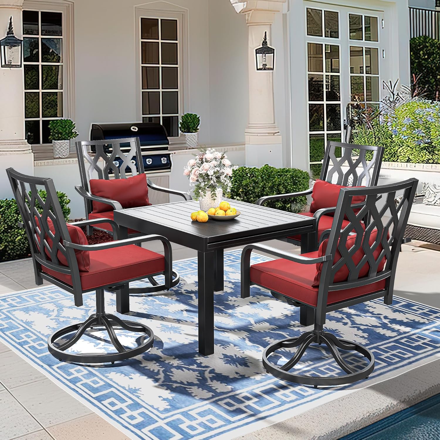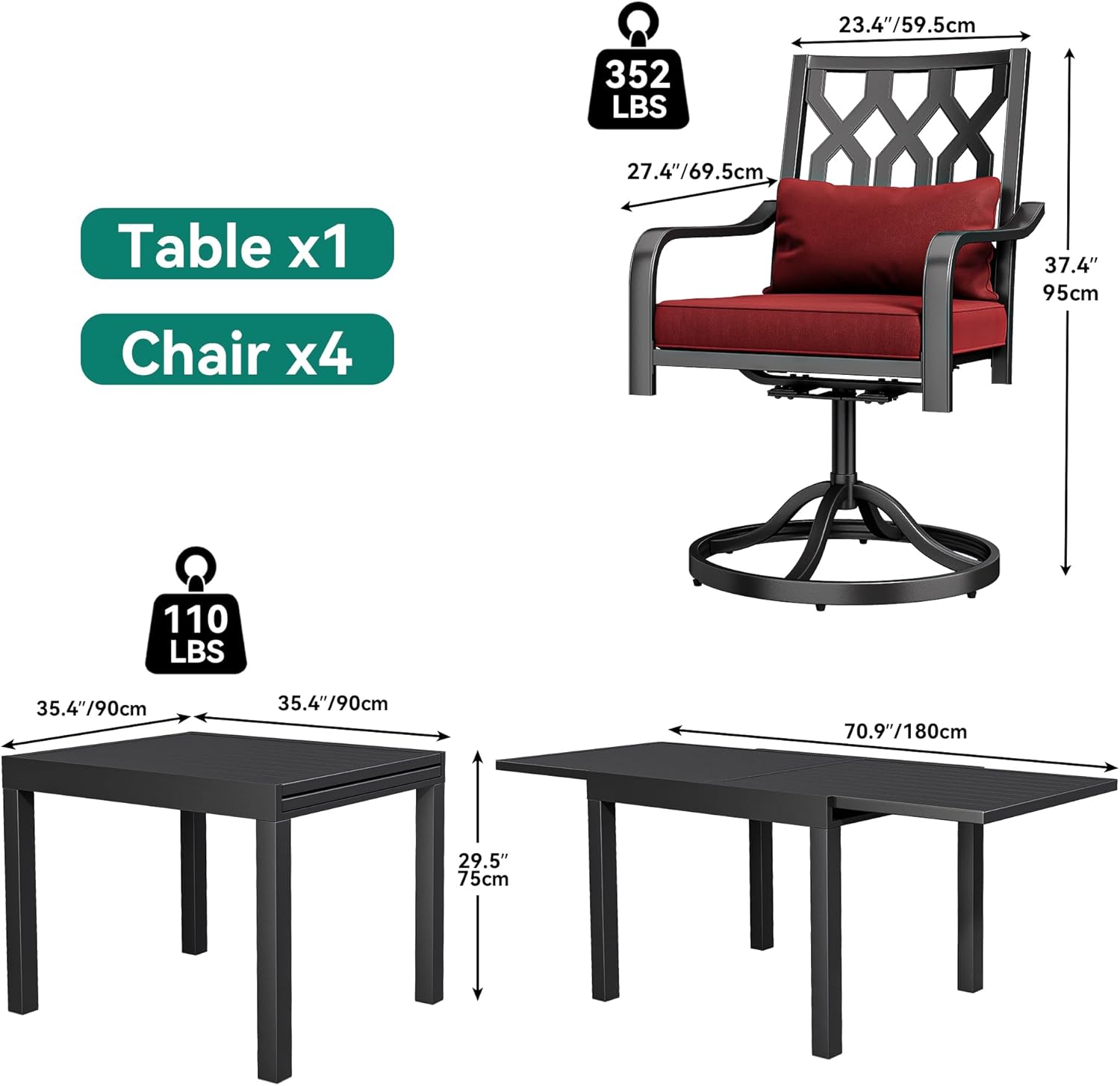 YITAHOME 5 Piece Outdoor dining set, Metal Patio Dining Set w/4 Cushioned Metal Swivel Patio Chairs & Extendable Aluminum Patio Table, All Weather Outdoor Dining Set for Backyard Lawn Porch, Black