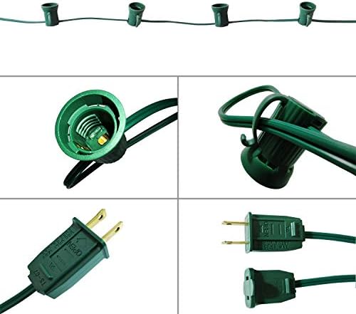 yongzhenlite Indoor Outdoor Light Stringer Set for Christmas Wedding Patio Decorative Lights,C7/E12 Candelabra Base,25 Foot Green Cord, 12″ Socket Spacing