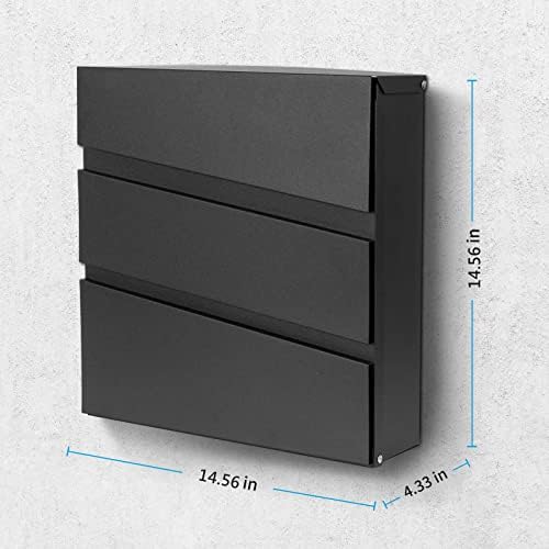 YOOBOX Mailbox Wall Mount, Steel Mail Boxes with Key Lock, Drop Box for Waterproof & Rust-Proof, Large Capacity, for House and Gates, 14.57 x 14.57 x 4.33 inch, Black MD002 Pro