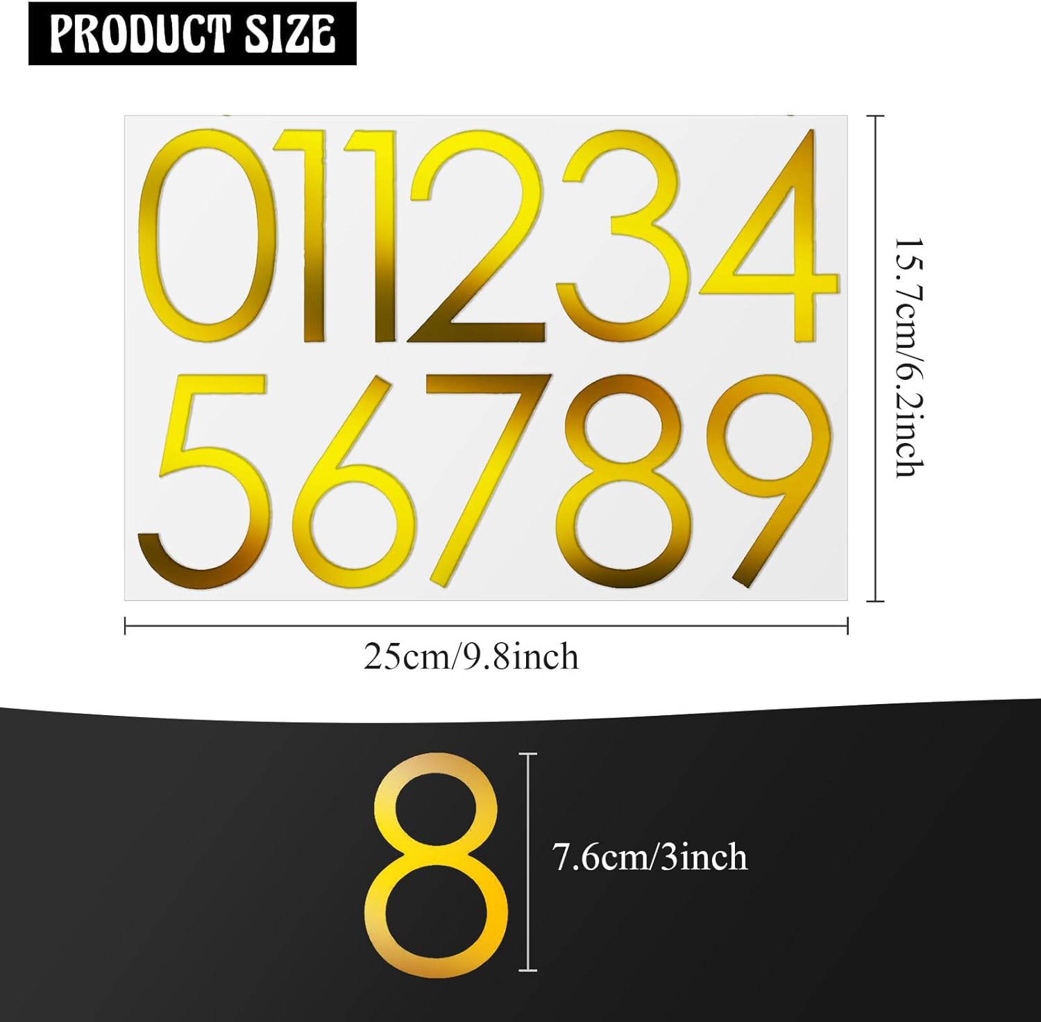 Zonon 88 Pcs 8 Sheets Large Number Stickers 3 Inch Mailbox Numbers Self Adhesive Numbers Waterproof Vinyl Number Stickers for Mailbox Sign Window Door Cars Trucks Home Business Address (Gold)