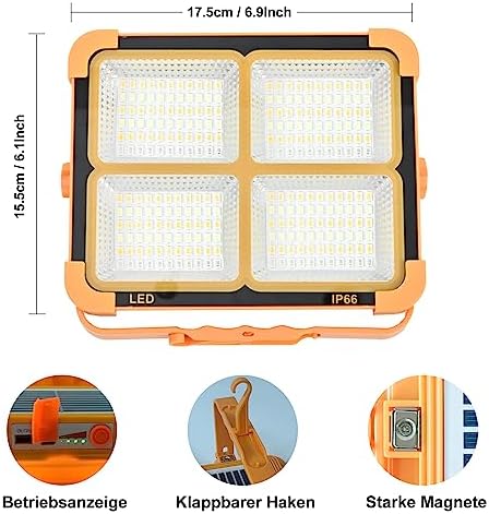 Must Have for Home & Outdoor – Rechargeable Work Light for warehouses, garages, hiking, camping, fishing, Emergency. LED solar flood light comes with a 1-year warranty, if you have any questions about the product, please feel free to contact us.