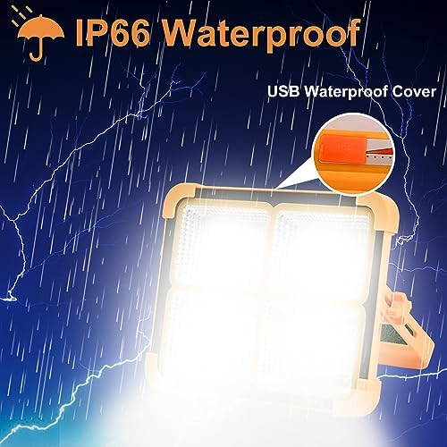 IP66 Waterproof Solar Work Light – The Waterproof Portable LED Camping Light with IP66 waterproof rating supports rainy day use.